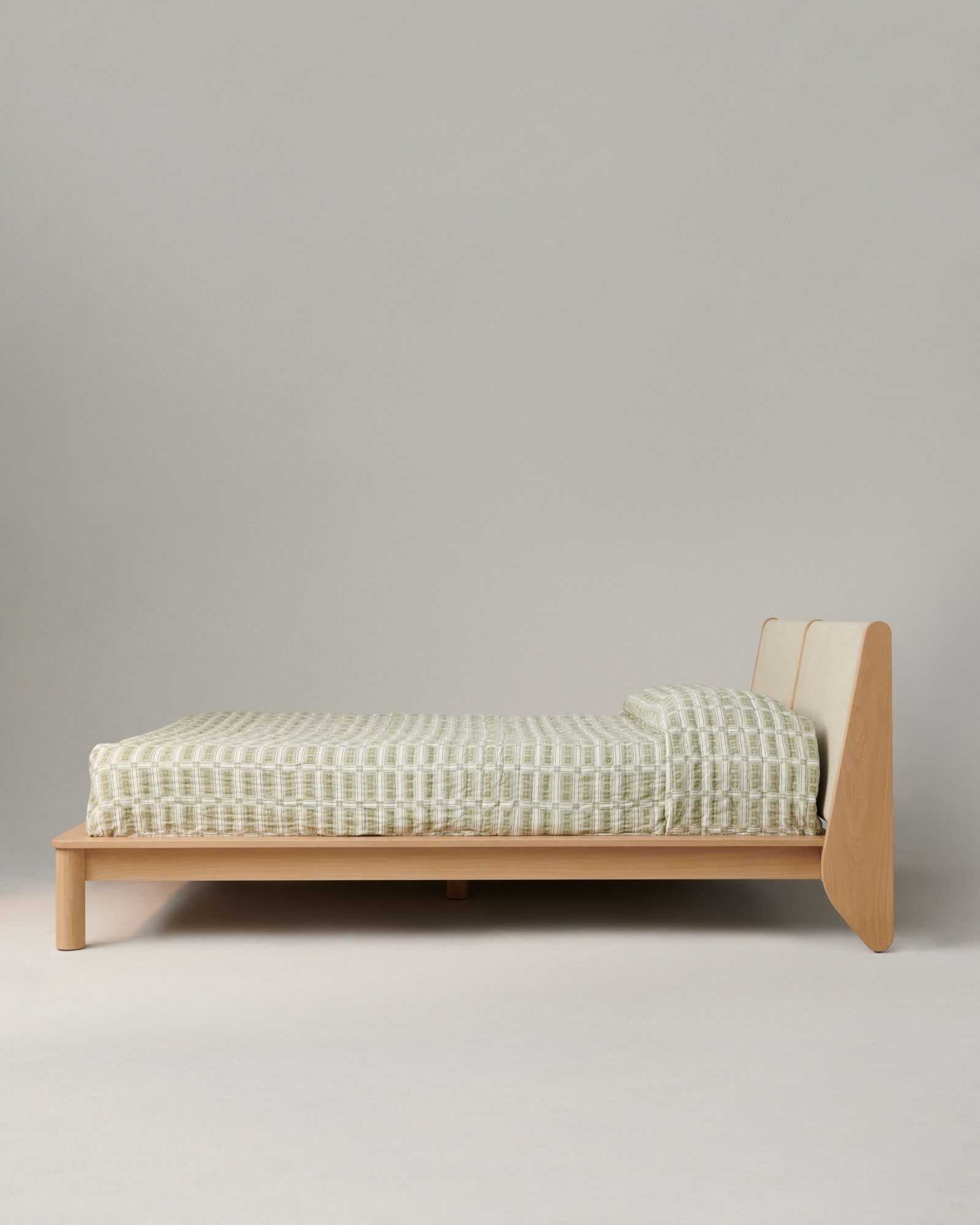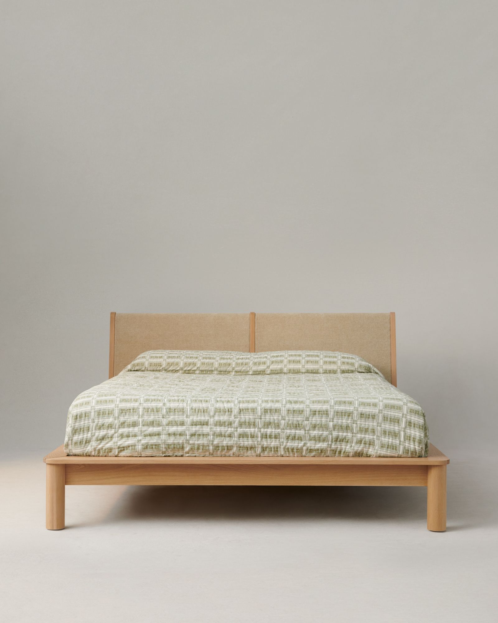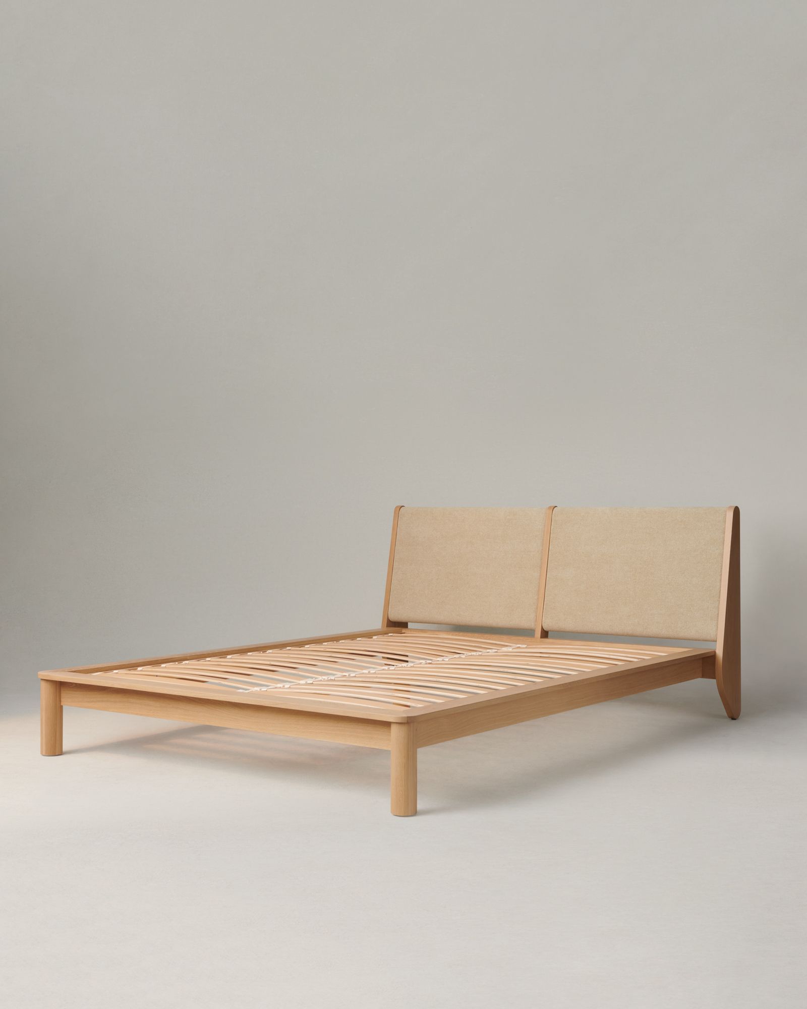 The Booham Bed marries modernist influences with our signature Australian sensibility. The curved base and rounded legs create a sculptural feel, while a rattan or upholstered bedhead adds style and comfort.