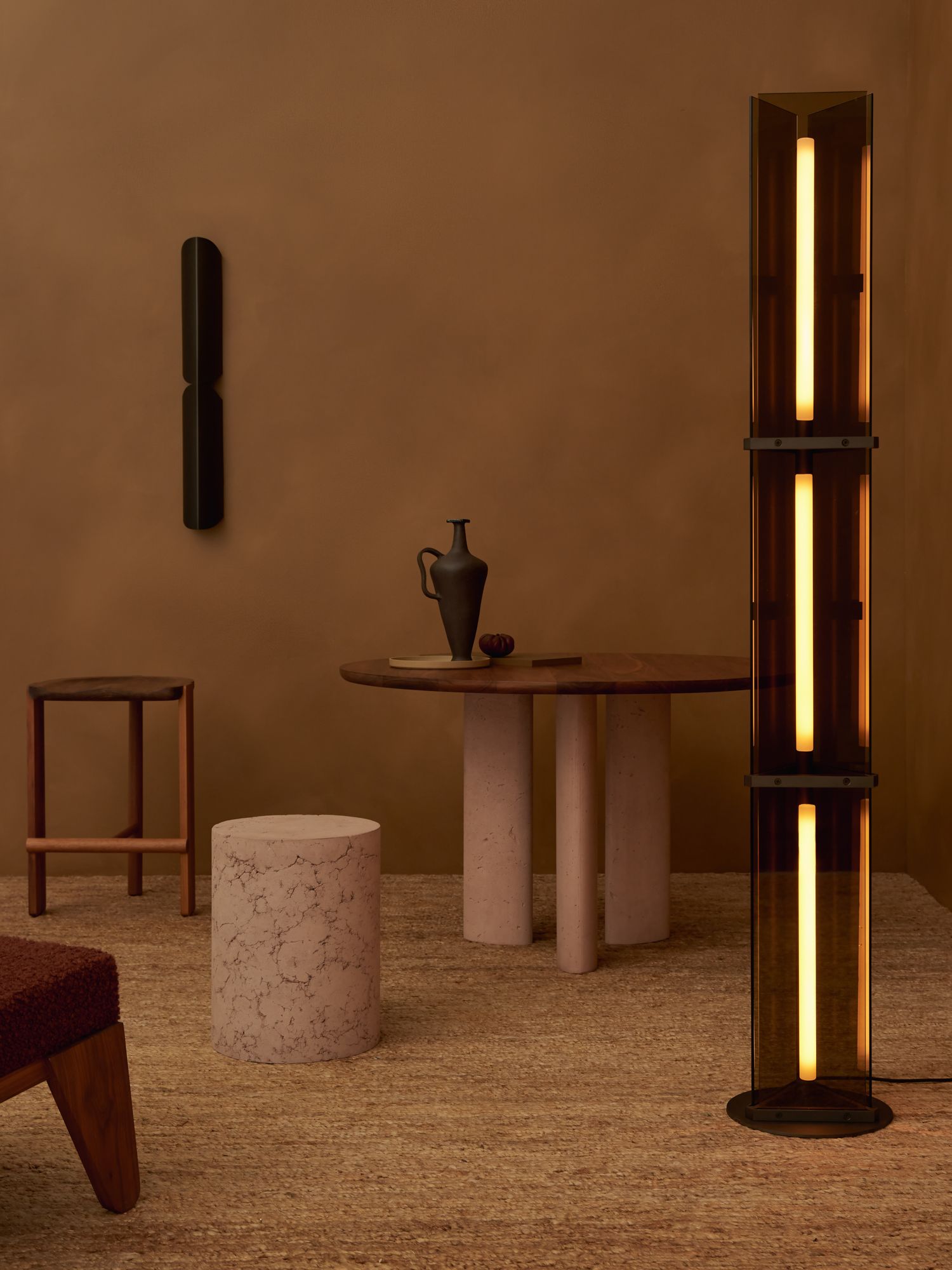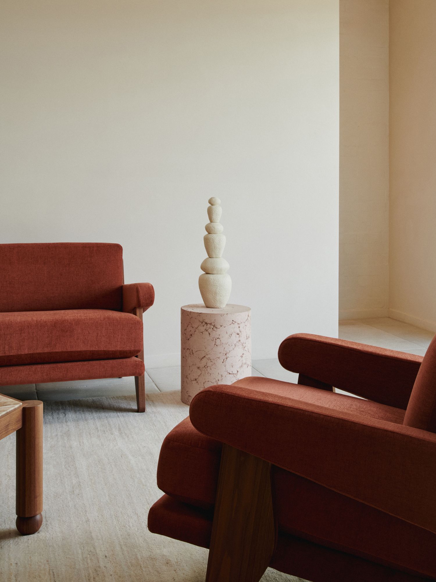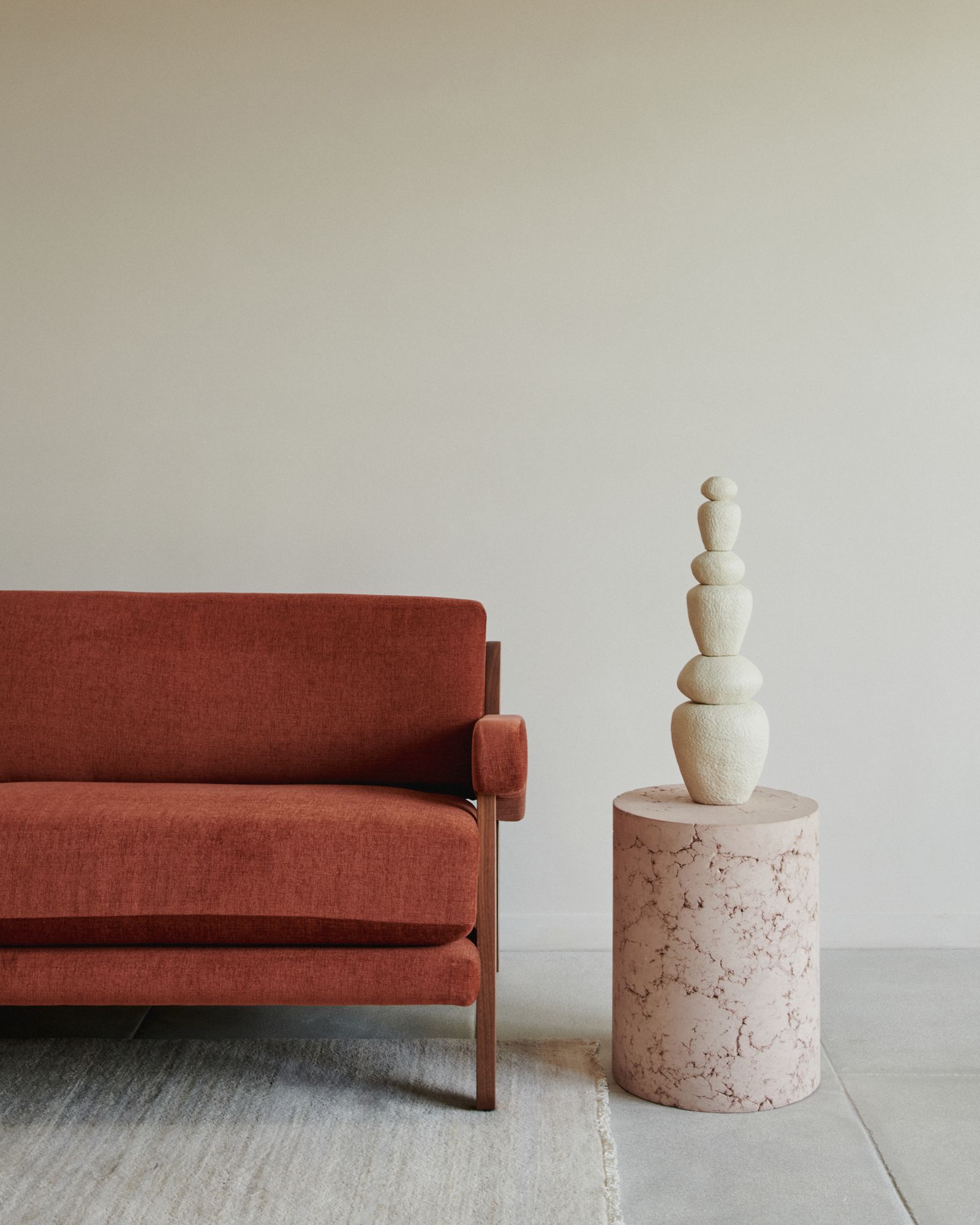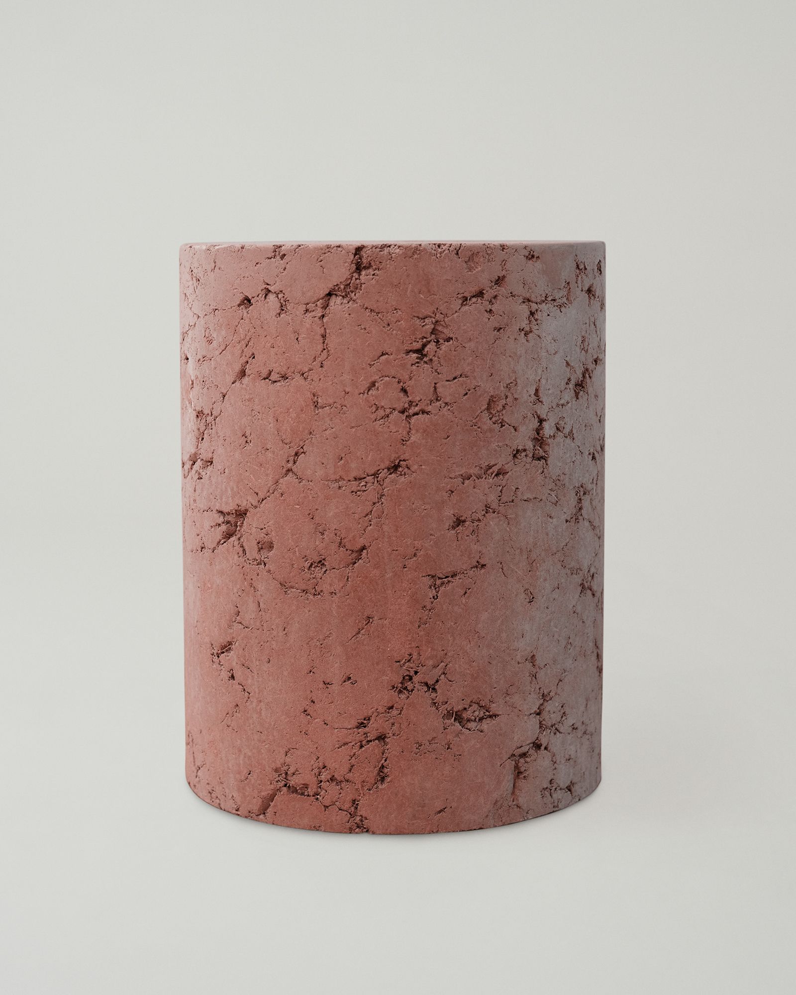The Geo Drum is made from rammed concrete mixed with natural pigments.