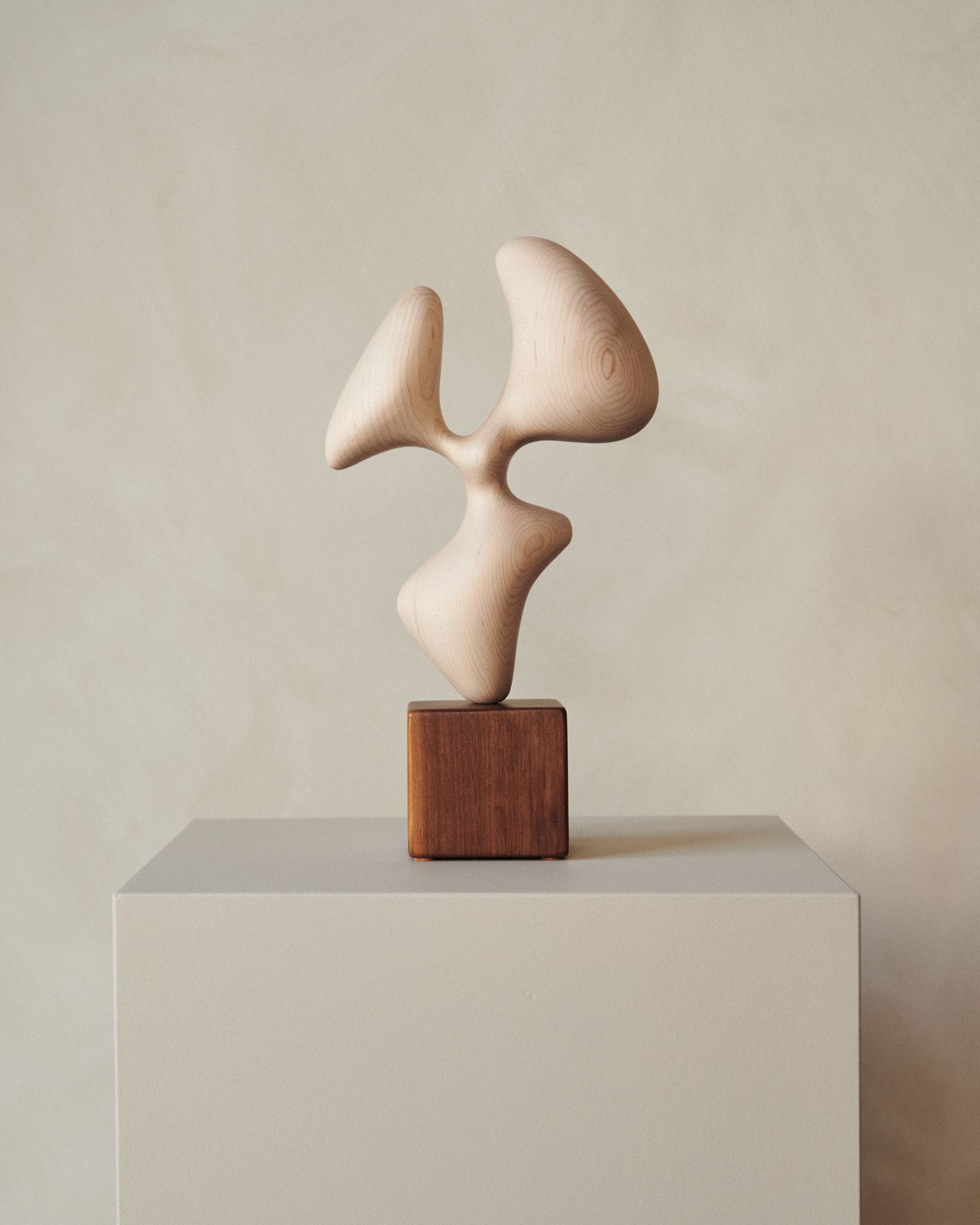Chandler McLellan crafts highly finished and tactile wood sculptures. His futuristic forms reveal a reverence for ruins and architectural artefacts, emphasising the intrinsic allure of natural materials shaped into expressive and sometimes industrial designs.