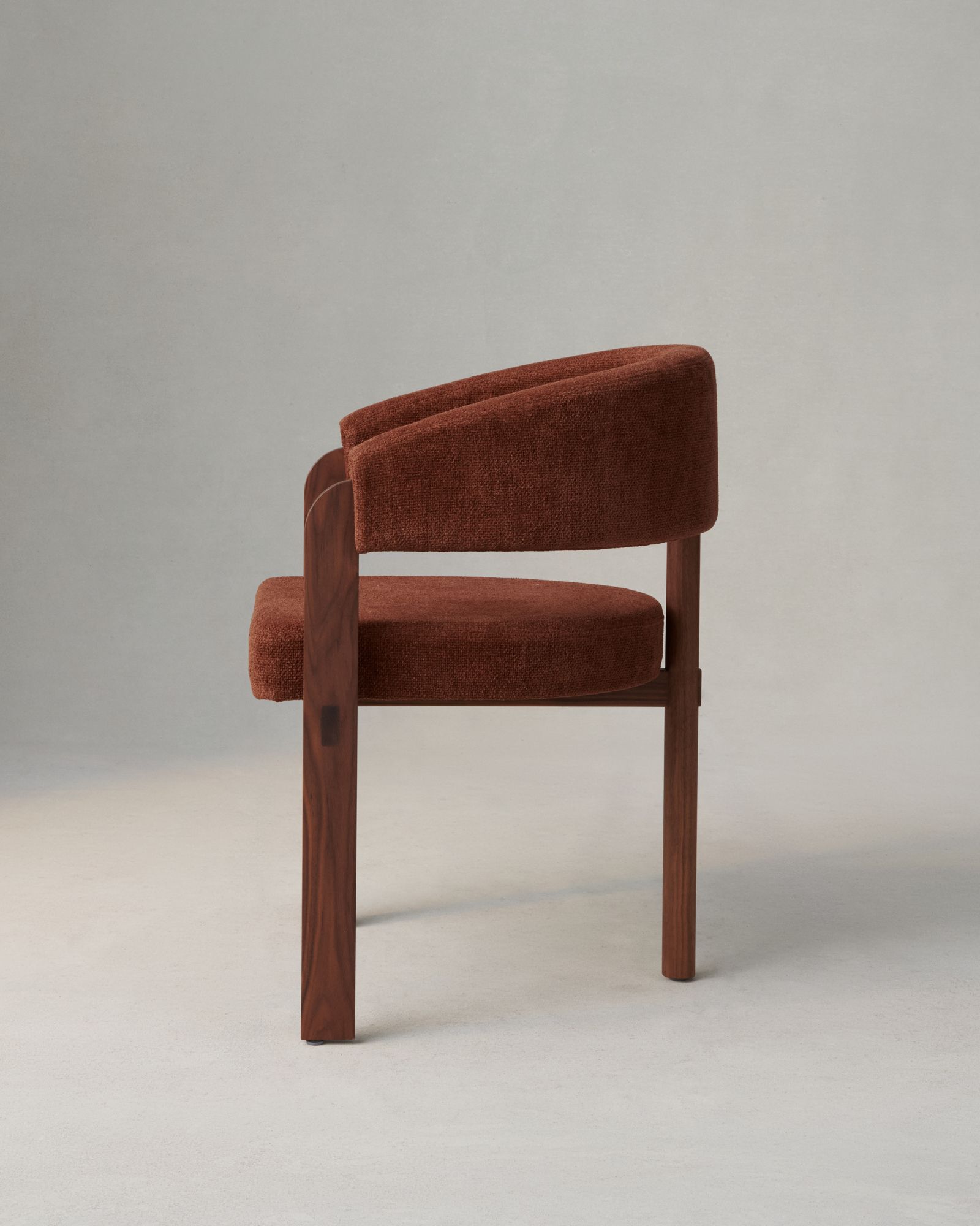 Available in a variety of solid timbers and fabrics. Pictured right – the Hinterland Dining Chair in Walnut and Kvadrat Nara 011.